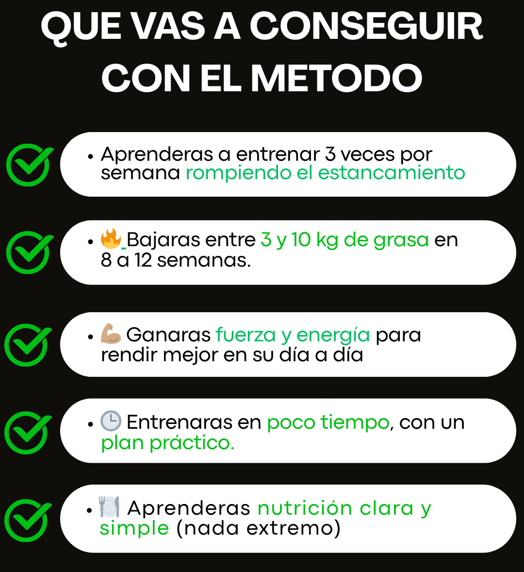 Sí. El método fue diseñado para profesionales con poco tiempo, que buscan bajar entre 6 y 13 kg de grasa y definir músculo sin pasar horas entrenando.